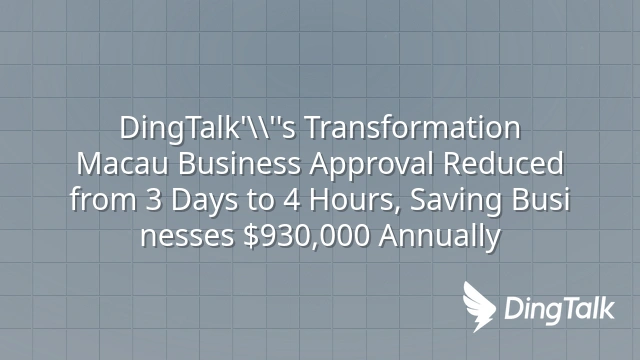 DingTalk's Transformation: Macau Business Approval Reduced from 3 Days to 4 Hours, Saving Businesses $930,000 Annually