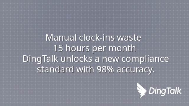 Manual clock-ins waste 15 hours per month? DingTalk unlocks a new compliance standard with 98% accuracy.