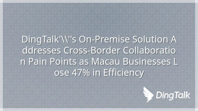 DingTalk's On-Premise Solution Addresses Cross-Border Collaboration Pain Points as Macau Businesses Lose 47% in Efficiency
