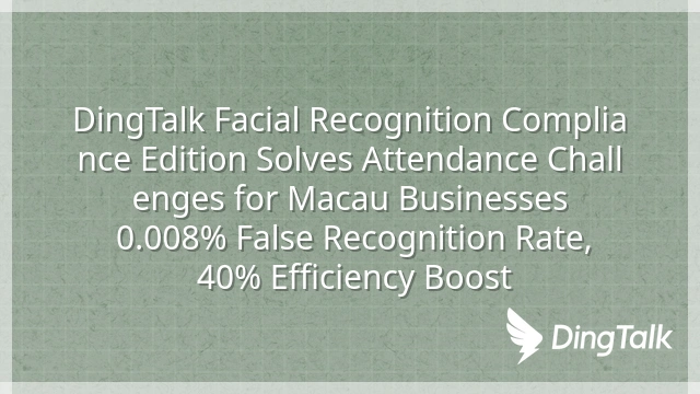 DingTalk Facial Recognition Compliance Edition Solves Attendance Challenges for Macau Businesses: 0.008% False Recognition Rate, 40% Efficiency Boost