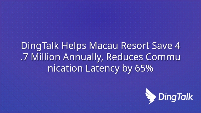 DingTalk Helps Macau Resort Save 4.7 Million Annually, Reduces Communication Latency by 65%