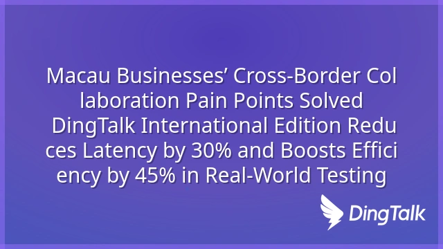 Macau Businesses’ Cross-Border Collaboration Pain Points Solved: DingTalk International Edition Reduces Latency by 30% and Boosts Efficiency by 45% in Real-World Testing