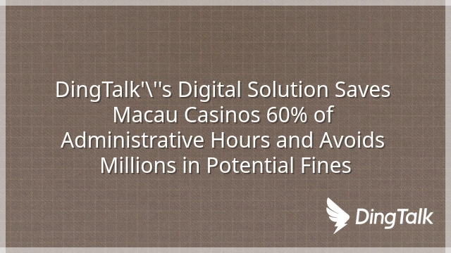 DingTalk's Digital Solution Saves Macau Casinos 60% of Administrative Hours and Avoids Millions in Potential Fines