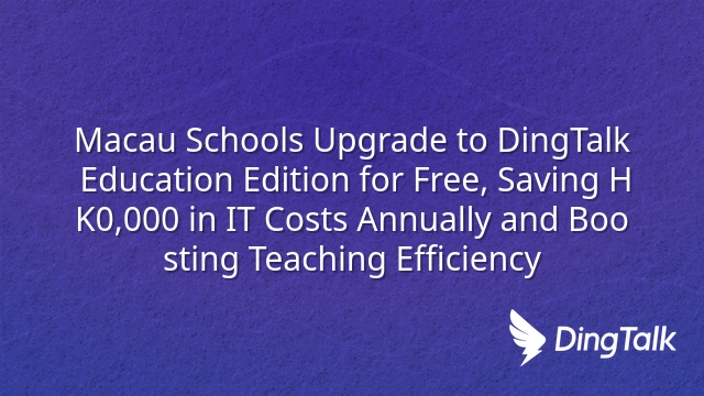 Macau Schools Upgrade to DingTalk Education Edition for Free, Saving HK$80,000 in IT Costs Annually and Boosting Teaching Efficiency