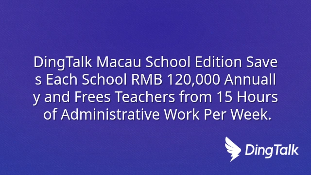 DingTalk Macau School Edition Saves Each School RMB 120,000 Annually and Frees Teachers from 15 Hours of Administrative Work Per Week.