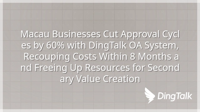 Macau Businesses Cut Approval Cycles by 60% with DingTalk OA System, Recouping Costs Within 8 Months and Freeing Up Resources for Secondary Value Creation