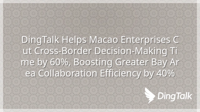 DingTalk Helps Macao Enterprises Cut Cross-Border Decision-Making Time by 60%, Boosting Greater Bay Area Collaboration Efficiency by 40%