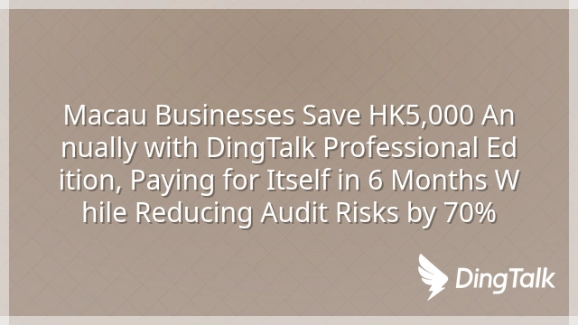 Macau Businesses Save HK$25,000 Annually with DingTalk Professional Edition, Paying for Itself in 6 Months While Reducing Audit Risks by 70%