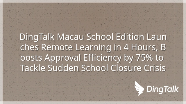 DingTalk Macau School Edition Launches Remote Learning in 4 Hours, Boosts Approval Efficiency by 75% to Tackle Sudden School Closure Crisis