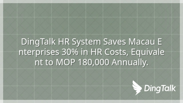 DingTalk HR System Saves Macau Enterprises 30% in HR Costs, Equivalent to MOP 180,000 Annually.