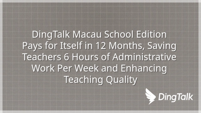 DingTalk Macau School Edition Pays for Itself in 12 Months, Saving Teachers 6 Hours of Administrative Work Per Week and Enhancing Teaching Quality