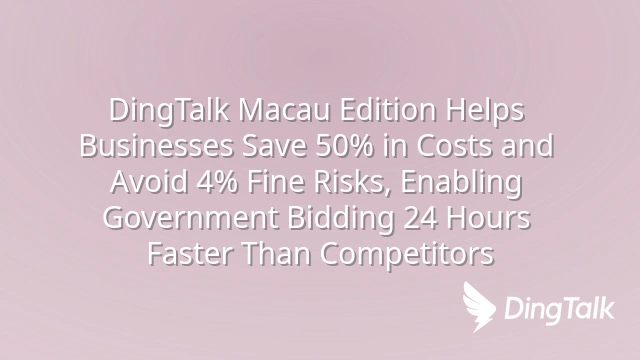 DingTalk Macau Edition Helps Businesses Save 50% in Costs and Avoid 4% Fine Risks, Enabling Government Bidding 24 Hours Faster Than Competitors