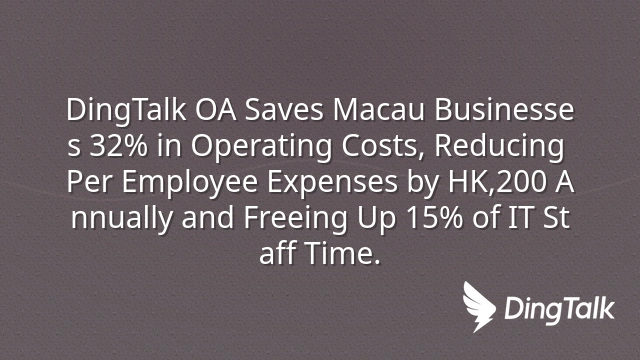 DingTalk OA Saves Macau Businesses 32% in Operating Costs, Reducing Per Employee Expenses by HK$1,200 Annually and Freeing Up 15% of IT Staff Time.
