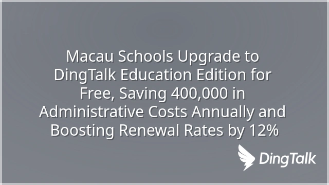 Macau Schools Upgrade to DingTalk Education Edition for Free, Saving 400,000 in Administrative Costs Annually and Boosting Renewal Rates by 12%
