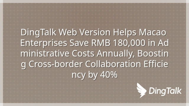DingTalk Web Version Helps Macao Enterprises Save RMB 180,000 in Administrative Costs Annually, Boosting Cross-border Collaboration Efficiency by 40%