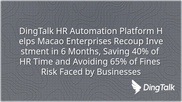 DingTalk HR Automation Platform Helps Macao Enterprises Recoup Investment in 6 Months, Saving 40% of HR Time and Avoiding 65% of Fines Risk Faced by Businesses
