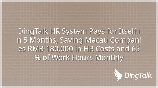 DingTalk HR System Pays for Itself in 5 Months, Saving Macau Companies RMB 180,000 in HR Costs and 65% of Work Hours Monthly