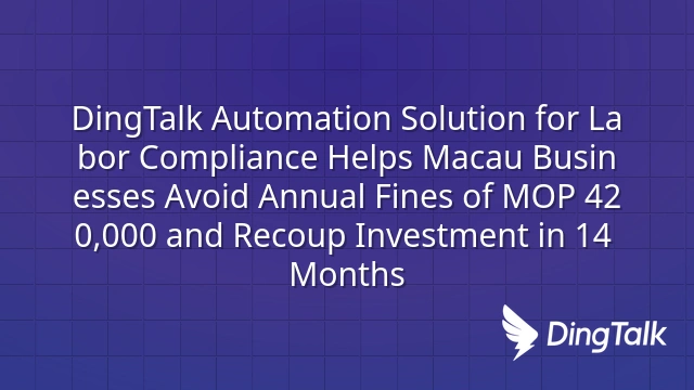 DingTalk Automation Solution for Labor Compliance Helps Macau Businesses Avoid Annual Fines of MOP 420,000 and Recoup Investment in 14 Months