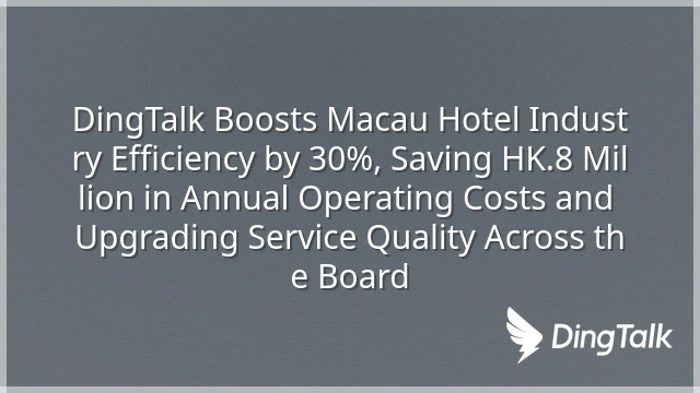 DingTalk Boosts Macau Hotel Industry Efficiency by 30%, Saving HK$1.8 Million in Annual Operating Costs and Upgrading Service Quality Across the Board