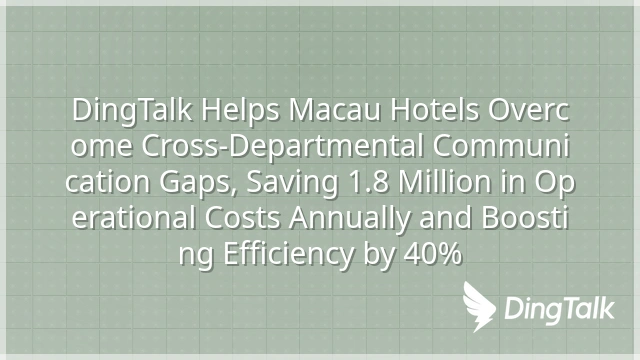 DingTalk Helps Macau Hotels Overcome Cross-Departmental Communication Gaps, Saving 1.8 Million in Operational Costs Annually and Boosting Efficiency by 40%