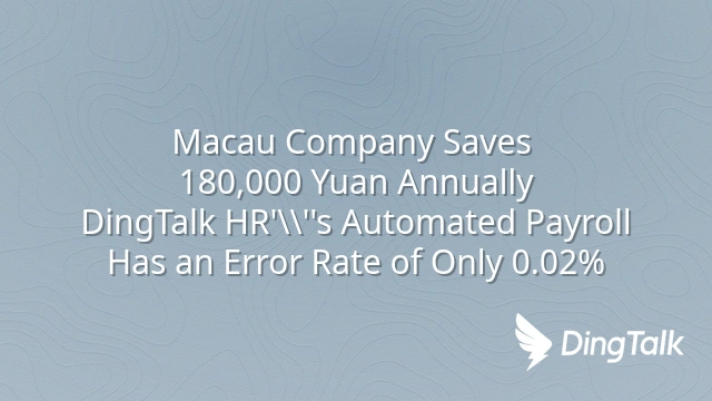 Macau Company Saves 180,000 Yuan Annually: DingTalk HR's Automated Payroll Has an Error Rate of Only 0.02%