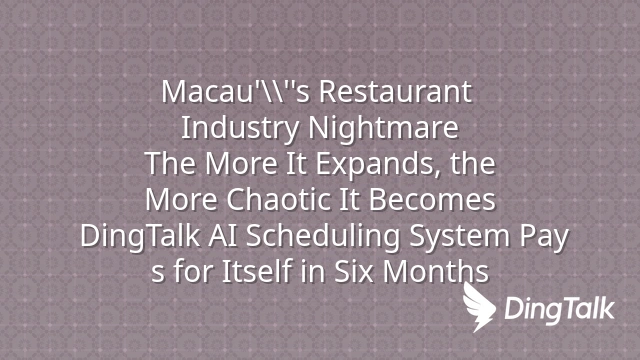 Macau's Restaurant Industry Nightmare: The More It Expands, the More Chaotic It Becomes? DingTalk AI Scheduling System Pays for Itself in Six Months