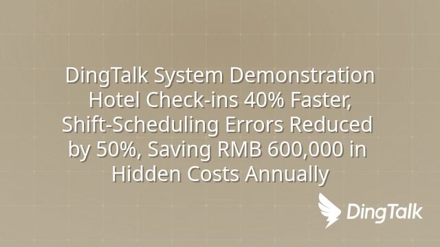 DingTalk System Demonstration: Hotel Check-ins 40% Faster, Shift-Scheduling Errors Reduced by 50%, Saving RMB 600,000 in Hidden Costs Annually