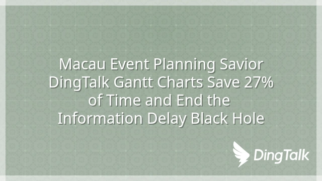 In Macau, event planning is highly competitive, and delayed information is eating into profits. DingTalk's Gantt chart, with its visual scheduling and automated collaboration features, saves an averag ...