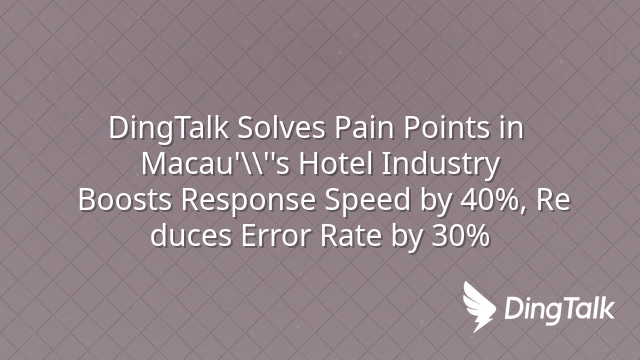 DingTalk Solves Pain Points in Macau's Hotel Industry: Boosts Response Speed by 40%, Reduces Error Rate by 30%