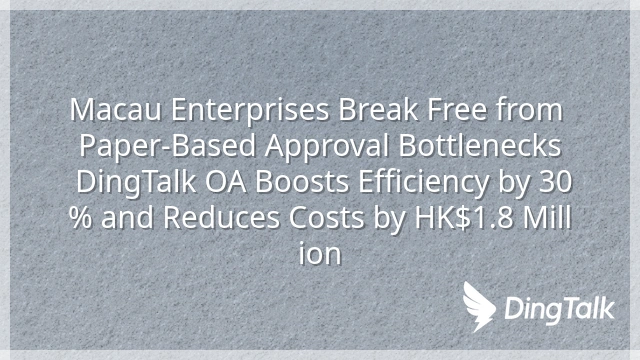 Macau Enterprises Break Free from Paper-Based Approval Bottlenecks: DingTalk OA Boosts Efficiency by 30% and Reduces Costs by HK$1.8 Million