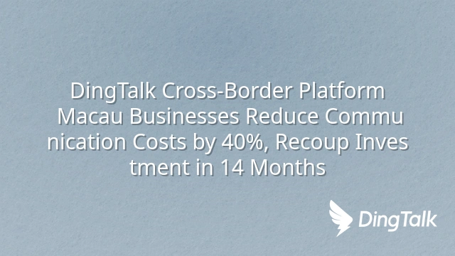 DingTalk Cross-Border Platform: Macau Businesses Reduce Communication Costs by 40%, Recoup Investment in 14 Months
