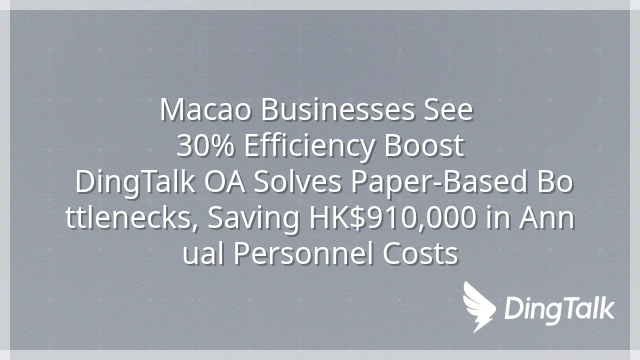 Macao Businesses See 30% Efficiency Boost: DingTalk OA Solves Paper-Based Bottlenecks, Saving HK$910,000 in Annual Personnel Costs