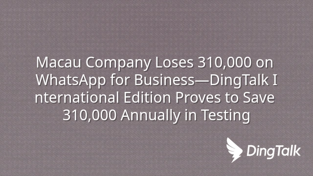 Macau Company Loses 310,000 on WhatsApp for Business—DingTalk International Edition Proves to Save 310,000 Annually in Testing