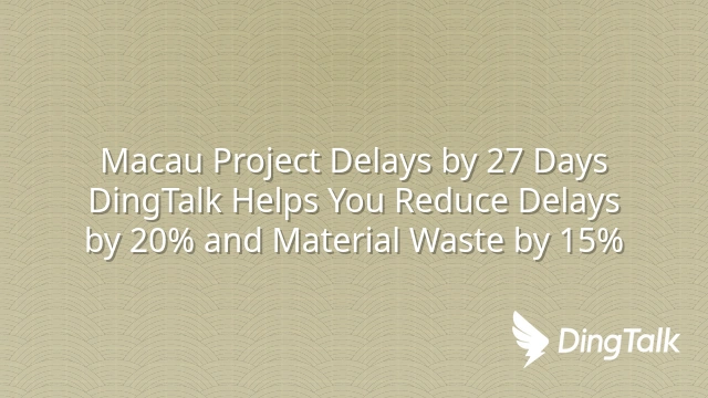 Macau Project Delays by 27 Days? DingTalk Helps You Reduce Delays by 20% and Material Waste by 15%