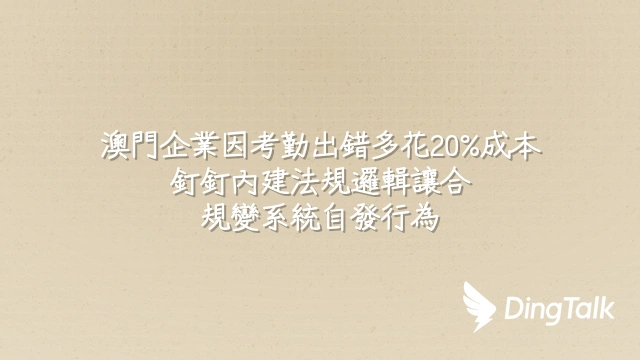 釘釘的地理定位打卡與彈性排班引擎,直接對應《澳門勞動關係法》每日8小時、每週48小時的法定上限。系統自動偵測連續出勤逾10小時的高風險排班,並即時通知主管調整,意味著違規工時在發生前就被攔截,因為預警機制已嵌入日常操作。