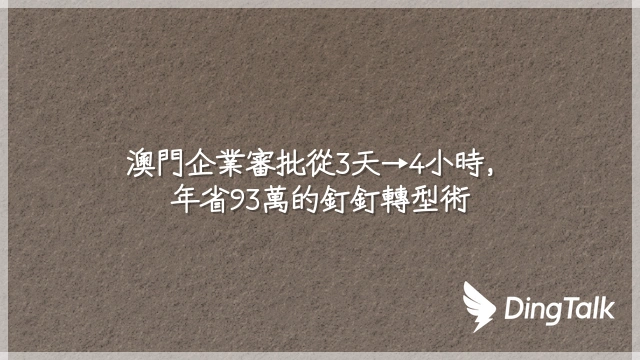 第三方管理效能評估報告顯示,澳門企業導入釘釘後,審批時間平均縮短68–82%,月處理量提升逾3倍。這不是理論,是實際發生的變革。一家本地連鎖酒店集團過去付款審批要4天,常因主管出差延宕;現在壓縮至1小時內完成。靠的是「智能路由+電子簽核+移動審批」三合一機制。