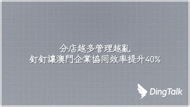 多姆科技(DomTech)是釘釘在澳門的官方指定服務商,專門為廣大客戶提供釘釘服務。如果您還想瞭解更多釘釘平臺應用的內容,可以直接諮詢我們的在線客服,或者通过电话+852 95970612或邮箱cs@dingtalk-macau.com联系我们。我們有優秀的開發和運維團隊,豐富的市場服務經驗,可以為您提供專業的釘釘解決方案和服務!