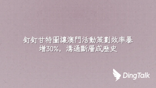 多姆科技(DomTech)是釘釘在澳門的官方指定服務商,專門為廣大客戶提供釘釘服務。如果您還想瞭解更多釘釘平臺應用的內容,可以直接諮詢我們的在線客服,或者通过电话+852 95970612或邮箱cs@dingtalk-macau.com联系我们。我們有優秀的開發和運維團隊,豐富的市場服務經驗,可以為您提供專業的釘釘解決方案和服務!