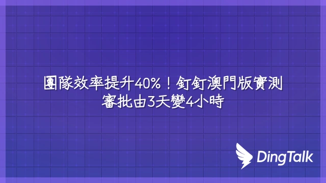 紙本簽核拖慢決策,釘釘澳門版將平均審批週期從3天壓縮到4小時內。某澳門餐飲集團導入後,請購流程處理時間減少90%,管理層原本耗在確認流程的精力,現在直接投入菜單優化與供應商談判。