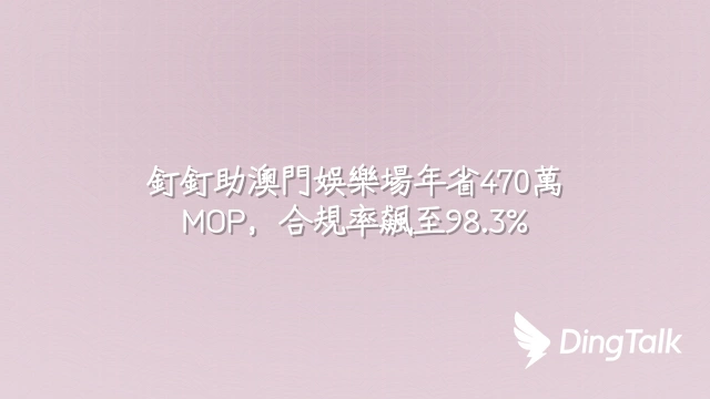 釘釘助澳門娛樂場年省470萬MOP,合規率飆至98.3%