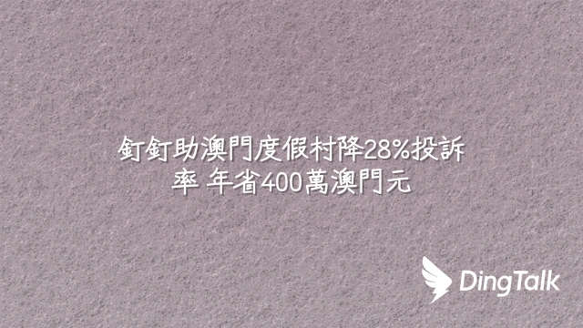 釘釘助澳門度假村降28%投訴率 年省400萬澳門元