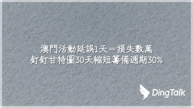 澳門活動延誤1天=損失數萬?釘釘甘特圖30天縮短籌備週期30%