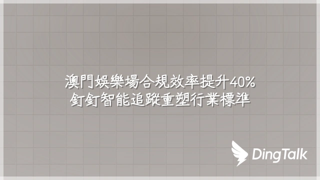 澳門娛樂場合規效率提升40%:釘釘智能追蹤重塑行業標準