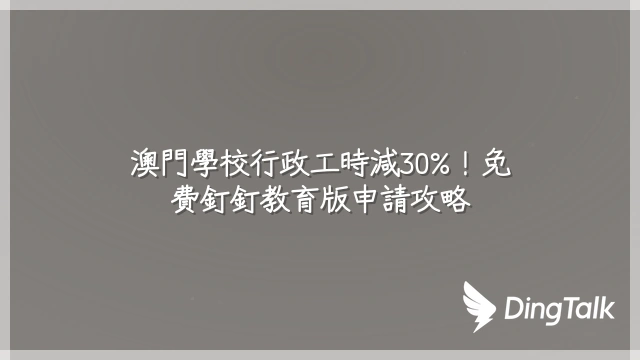 澳門學校行政工時減30%!免費釘釘教育版申請攻略