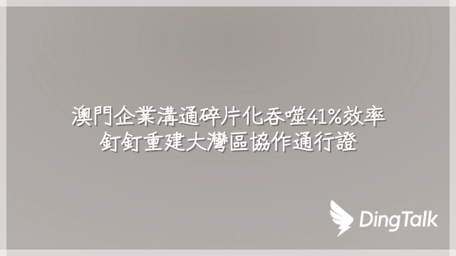澳門企業溝通碎片化吞噬41%效率?釘釘重建大灣區協作通行證