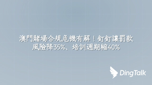 澳門賭場合規危機有解!釘釘讓罰款風險降35%、培訓週期縮40%