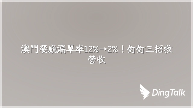 澳門餐廳漏單率12%→2%!釘釘三招救營收