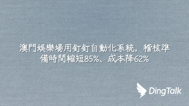 澳門娛樂場用釘釘自動化系統,稽核準備時間縮短85%、成本降62%