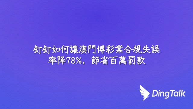 釘釘如何讓澳門博彩業合規失誤率降78%,節省百萬罰款