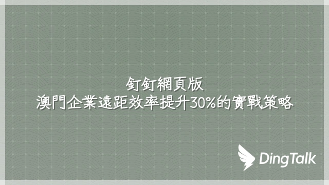 釘釘網頁版:澳門企業遠距效率提升30%的實戰策略